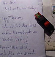 Das Jahr 2011 endet mit dem ersten und bisher einzigen Manuskript, das auf postalischem Wege in Form eines USB-Sticks eingeht. Die Bekanntschaft mit Maurice Moel ergab sich schon Monate zuvor auf der Bento.dühne, einer Karlsruhe Lesebühne, die in den Folgejahren von großer Bedeutung für die kreative Kum-panei sein wird.